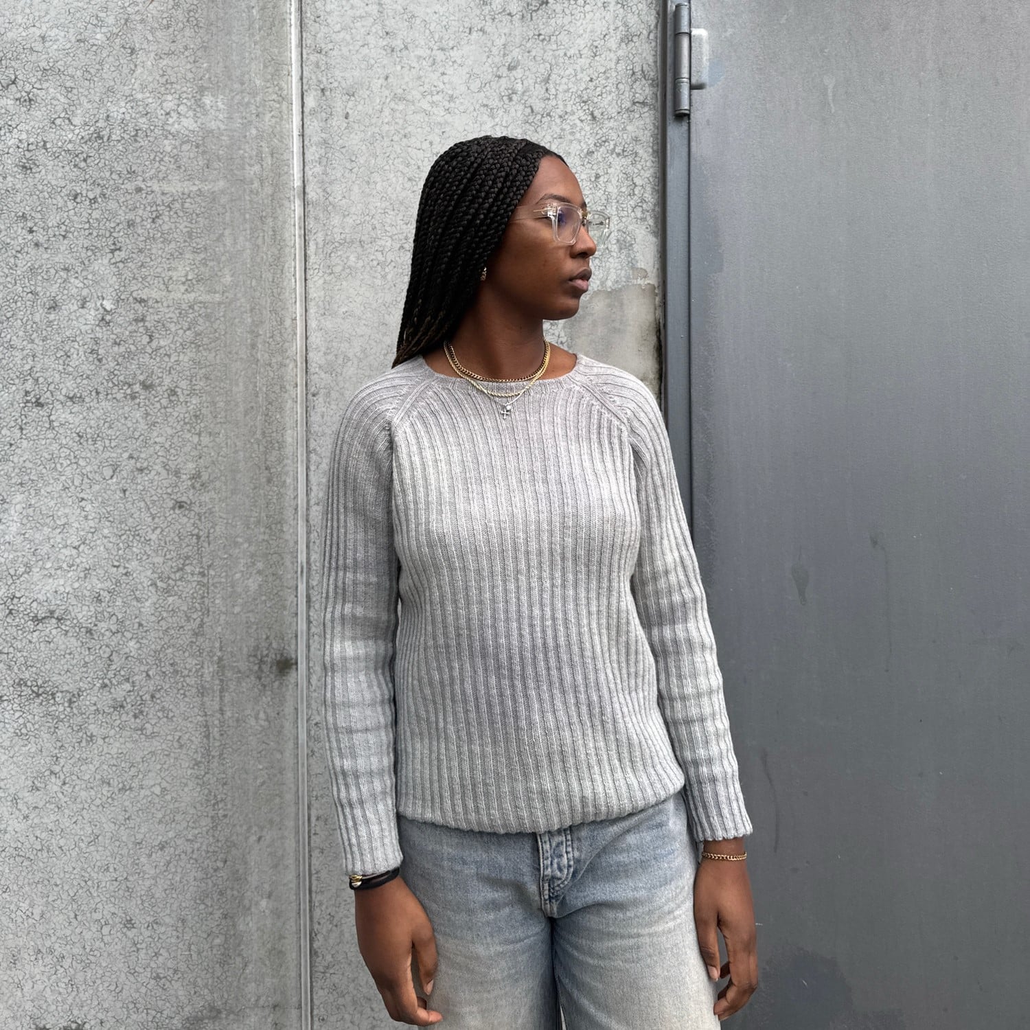 Schmaler Pullover aus unserer Lammwoolle. Durch das Rippenmuster passt er sich deinem Körper an und macht jede Bewegung mit.